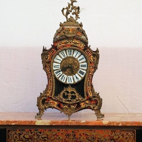 Klokken har en utsmykket rund kant og utstrler klassisk sjarm. Bevegelsens kropp er i god stand, selv om det er tegn p grunn av alder, noe som ytterligere fremhever den antikke stilen.