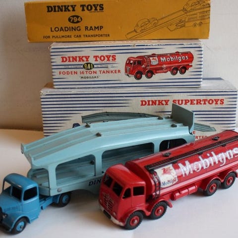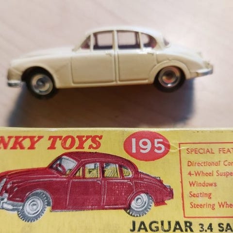 Peugeot 404 Break 'POLITI'. Merket Dinky Toys nr.: 1429. Inkludert trafikkskilt. Farge Svart/Hvit.