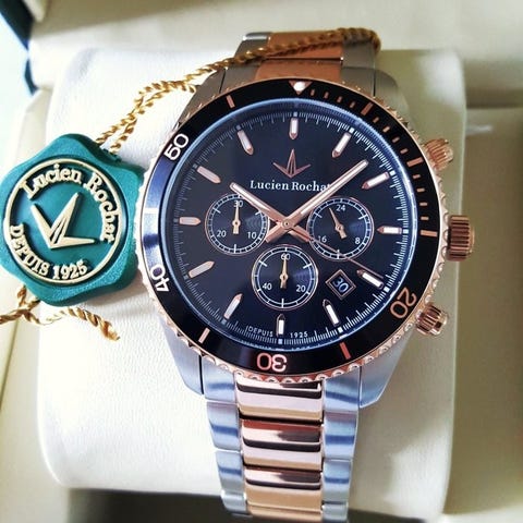 Et vakkert og klassisk utformet klokke fra Lucien Rochat, referansenummer R0421116005. Klokken drives av et automatisk urverk, som er synlig p baksiden av klokken. Den er ogs utstyrt med datovisning ved klokken 6-posisjonen. Klokken er lett lese takket vre den stramt utformede, mrke urskiven med kontrasterende detaljer.