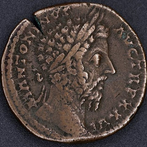 Obv.: M AGRIPPA L F COS III: Hode av Agrippa, til venstre, ifrt rostral krone