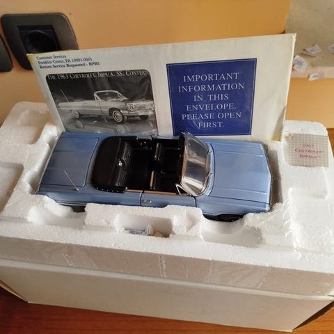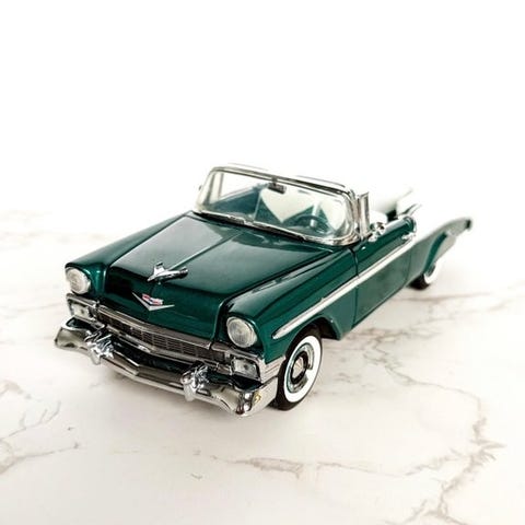 Danbury Mint 1:24 skala; 1957 Chevrolet Bel Air; metallisk bl cabriolet klassisk modell
