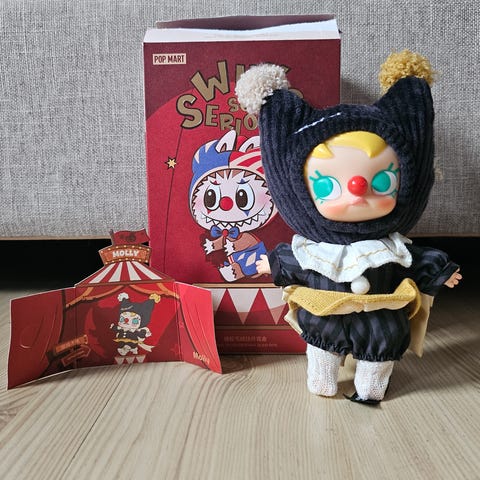 Loddet inkluderer den originale POP MART-boksen. Vr oppmerksom p at boksen har sm brukstegn, som synlig i bildene. Dette objektet er ideelt for samlere av POP MART, SKULLPANDA og moderne designerleker.