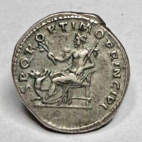 Forside (Avers): N FOCAS PRP AVC, frontalt stende, drapert og pansret bust med krone (uten pendilier), holder korsglobus.