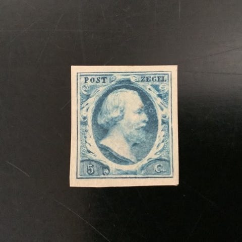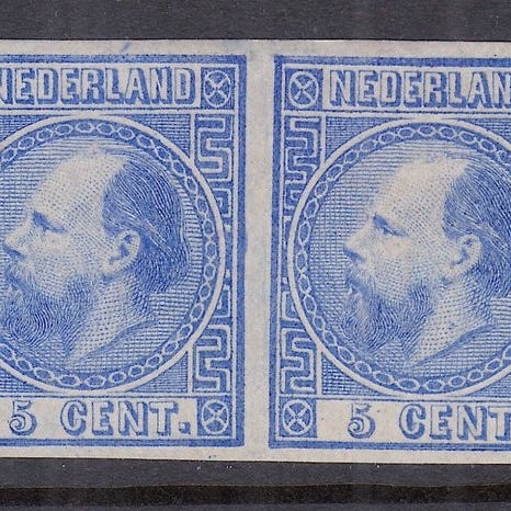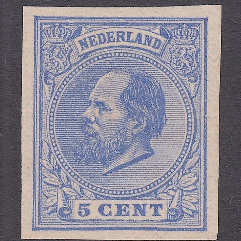 Ubrukte 20 cent Koning Willem III med original lim og klistremerkerester.