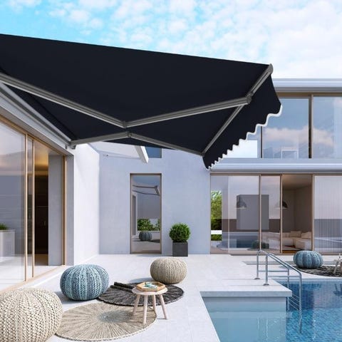 2025 TERRASSEMARKISE 450x300CM BREDDE/UTFALL - MOTORSTYRT - KASSETTMARKISE - HEL