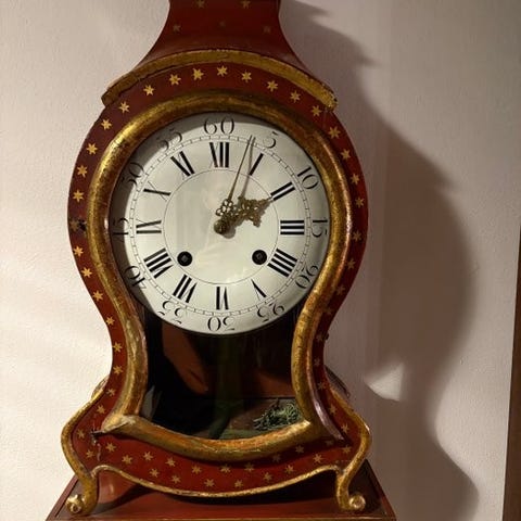 Rammen rundt urskiven er fortsatt vakkert i gull.