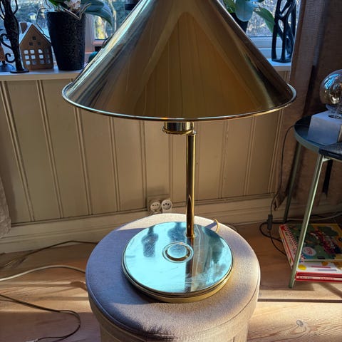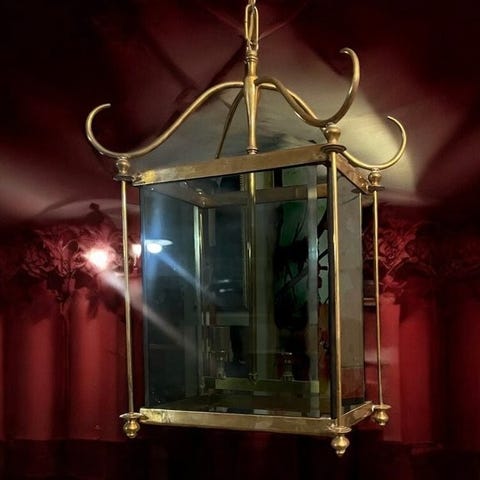 Gammel fransk lampe i Napolon III-stil. Den har et sylindrisk glass med gravering og blomsterdekor, som sprer et mykt og elegant lys.