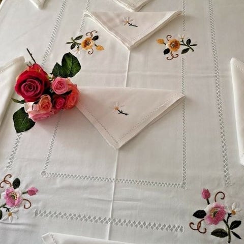 Serviettstrrelser 80 cm x 65 cm. Sett som nytt, aldri brukt, og i utmerket tilstand uten synlige feil. Forsendelse med forsikring via sporbar budtjeneste.