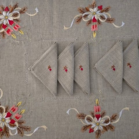 Serviettene er laget av rent linserviettstoff med et stort monogram i midten, hndbrodert, med en lengde p 7 cm.