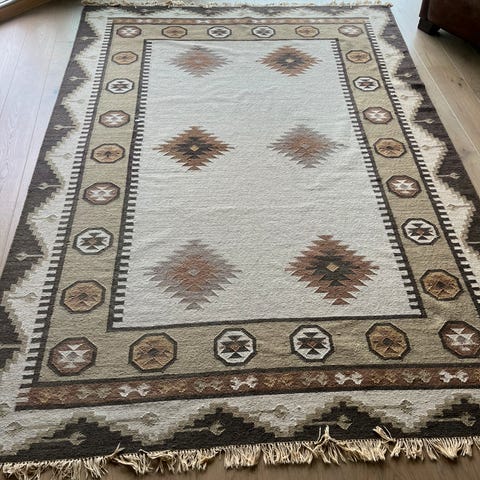 Eksklusiv (ny/ubrukt) hndvevd og hndknyttet designer Kelim fra Afghanistan med sertifikat for ekthet.