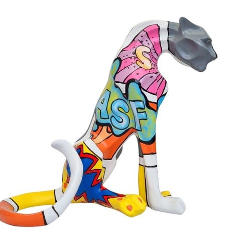 En rasende okse. Pop art-skulptur - Dekorative, sterke farger. Moderne design laget av harpiks og glassfiber av hy kvalitet. Vakkert detaljert. Hvert stykke er hndmalt, s sm avvik fra bildet er mulige. Et veldig vakkert og attraktivt stykke. Dimensjonene er som flger (omtrent):
