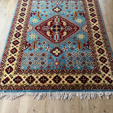 Et helt nytt, svrt hykvalitets, 100 % hndlaget, kunstnerisk abstrakt teppe av fin kvalitet. Laget med hykvalitets organisk ull og naturlige farger. Profesjonelt vasket og klart for sending, vil ankomme i tide og er svrt godt pakket. Nytt, av meget fin kvalitet, 100 % autentisk og helt hndlaget teppe.