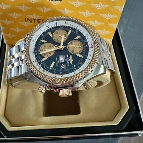 Ekstra inkluderer: generell reiseveske, original Breitling-garantihefte, merkelapp og original Breitling COSC-dokument.