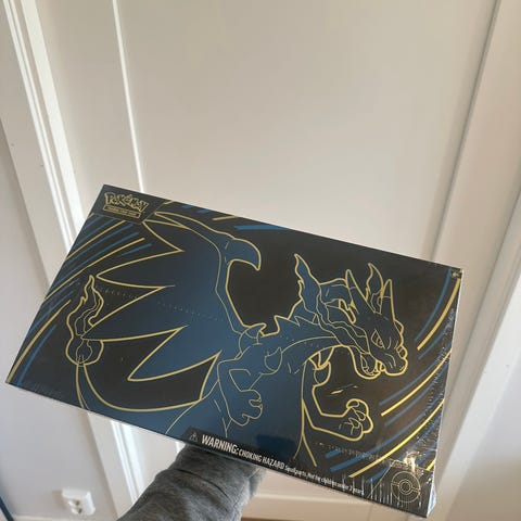 Jeg selger denne ultra premium Mega Charizard X i italiensk versjon, forseglet uten hull eller rifter.