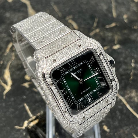Model: Santos de Cartier Large Black Automatic, i 'Meget god' stand. Alle funksjoner fungerer perfekt. Leveres med eske.