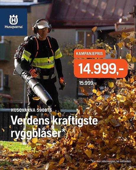 Rydder opp til 37 tonn snø i timen og har kastelengde på 14 meter.