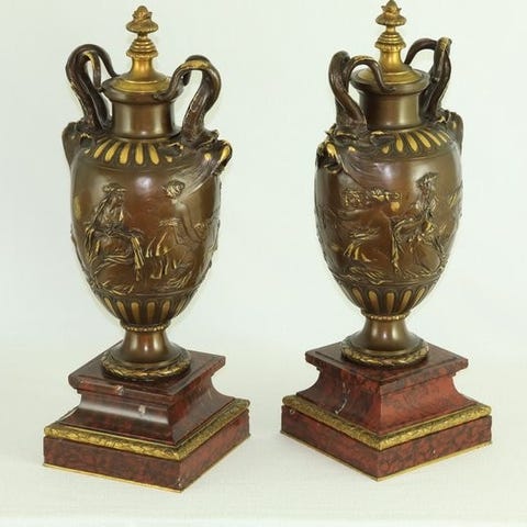Par av girandoler fra Wedgwood i bl Jasper og forgylt bronse, England.