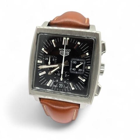 Den store stlreimen p 45 mm har en fast indre bezel og en roterende ytre bezel. Det er f naturlige tegn p bruk p kassen. Bezelene er i perfekt stand. Klokken drives av det automatiske kaliberet Heuer 15, som fortsatt fungerer i dag. Chronografen starter, stopper og nullstilles perfekt.