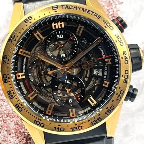En 1,7" kasse nedskalert med 0,1" fra 'Carrera Caliber Heuer 01 Chronograph'. Tachymeter-kransen bruker svart keramikk med utmerket ripesikkerhet, og urskiven har en skjelettspesifikasjon som gir et sporty og mekanisk inntrykk. Bevegelsen er utstyrt med kaliber 'Heuer 01', som har en svartbeiset rotor og et rdt kolonnehjul.