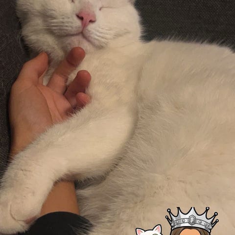 Tøffel er veldig glad i en god øremassasje - han kan bli så blissed out at han glemmer å male. Også glad i børsting. (Han har jobbet frem en ordentlig fløyelspels etter at han ble tatt inn - veterinæren var imponert på andre helsekontroll!)