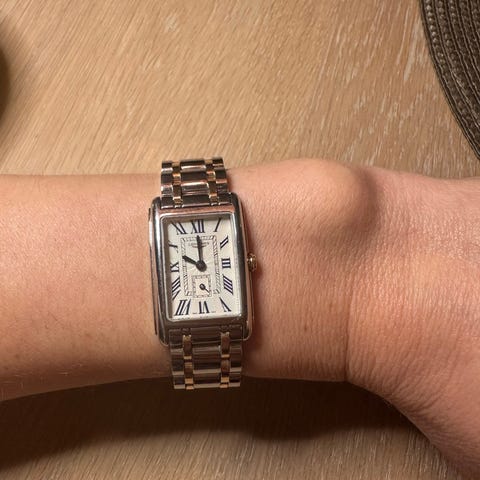 Vakker Longines dameklokke Dolce Vita, referansenummer L5.512.8.71.0, 18 karat rosegull, alligatorrem 17 mm, kvartsbevegelse, diameter 23x37 mm, slv Guilloch urskive med romerske tall.