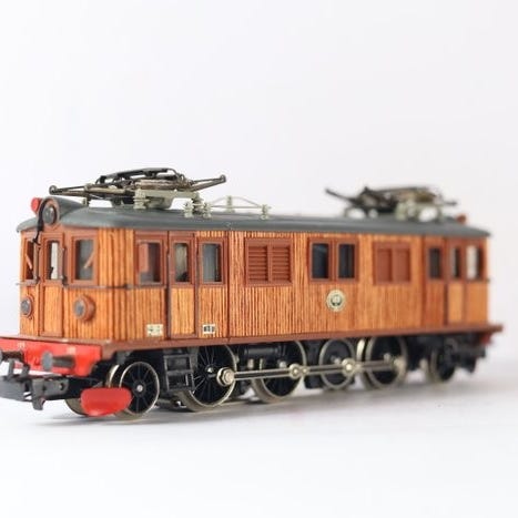 Denne Marklin-lokomotivet fungerer i Delta- eller digitalmodus med kode 72; trekker uten problemer og uten skli en lang rekke med Marklin-vogner.