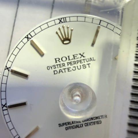 Sundust skive med orginale "diamanter". Dette er en ekte Rolex-del, ikke aftermarket eller kopi.