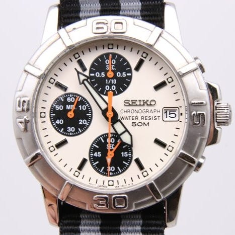Bevegelse: Seiko 7T94 chronograph quartz movement.