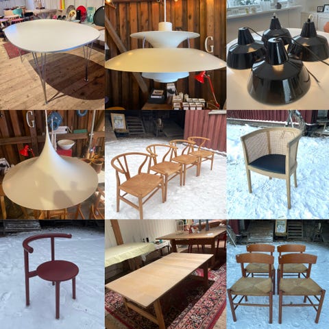 Godt nytt år! Lørdag 3. januar holder vi åpent kl 13-15. Butikken er full av danske møbelklassikere; Stoler, bord og lamper av Arne Jacobsen, Hans J. Wegner, Børge Mogensen, Le Klint, Poul Henningsen, Piet Hein med flere! Velkommen innom Gamle danske på Vøienvolden gård på Sagene!