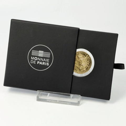 Veldig vakker gullmynt av Paris-mynten, verdi 250 euro, veier 8,45 g, har aldri vrt i omlp og er i sin originale utstillingsboks.