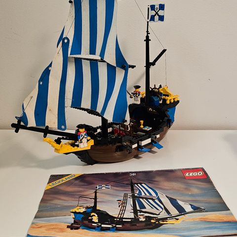 Dette settet tilbys med original eske, som viser tydelige bruksspor, men fortsatt bidrar til samlerverdien. Settet er ikke komplett: en del av forstavnen og akterskipet mangler, samt mesteparten av mannskapet. Det er n minifigur til stede, samt en ekstra skute.