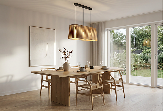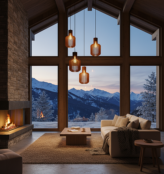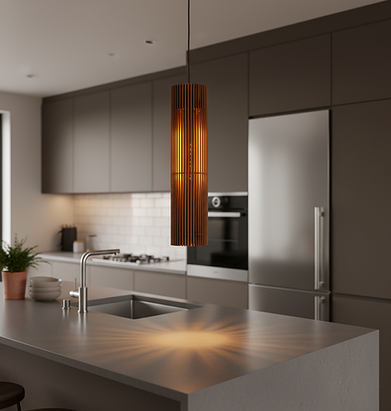 Den er skapt for å henge over spisebord og samlingspunkter i hjem og hytter, der man ønsker et varmt, rolig og stemningsskapende lys.