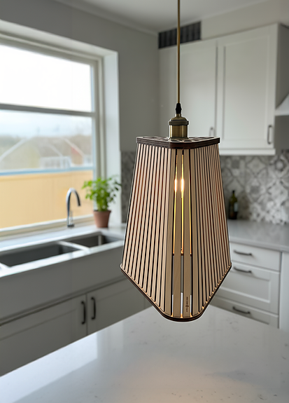 Hver lampe produseres på bestilling og har subtile variasjoner i treverket – en naturlig del av det håndlagde uttrykket som gjør hver Aurora unik.