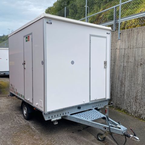 Komplett og moderne toalettkabin fra Arnpro, modell TC 500, produsert i 2022 og merket som damekabin. Enheten har elektrisk tilkobling (230V) og er utstyrt med veggmontert varmeovn, belysning, speil, vask og tankløsning for vann. Kabinen fremstår i ryddig stand innvendig, med noe kosmetisk slitasje og bulk i bunnrammen. Se bilder for detaljer.🔹 2022 Arnpro TC 500 Toalettkabin