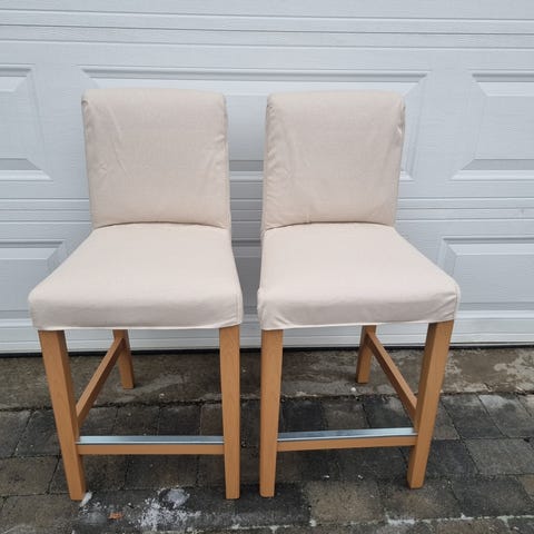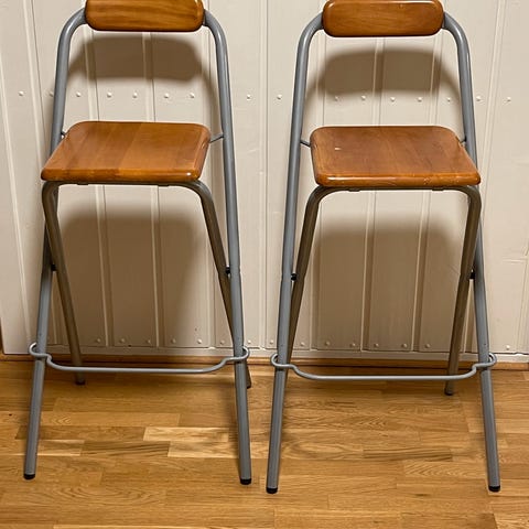 Selger solide og stilrene bord med tilhørende stoler fra restaurantdrift. Bordene har heltre bordplate med naturlig patina og stødig metallunderstell. Stolene er komfortable med slitesterkt trekk og metallben.