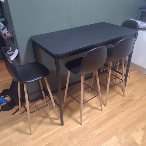Dette er møbler av god kvalitet, laget for daglig bruk i restaurant/café, og tåler mye. Normal bruksslitasje og patina som gir et røft og autentisk uttrykk (se bilder).