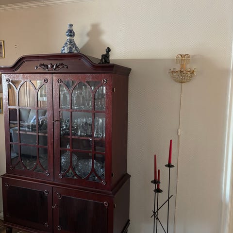 Skjenken selges som den er, etter nylig renovering. Belysningen er montert og fungerer.