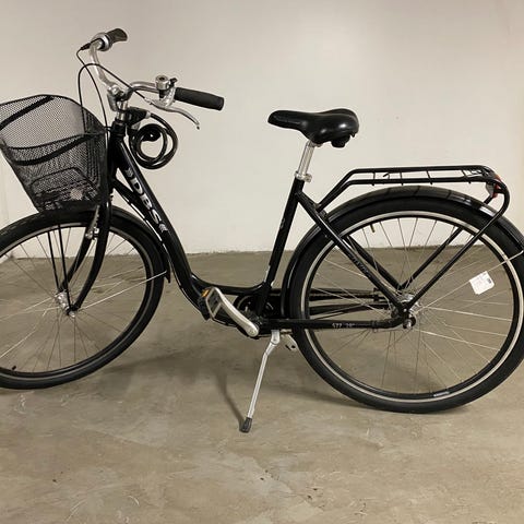Komfortabel og holdbar damesykkel med pedalbrems, kurv, bagasjebrett og et nytt komfortabelt sete.