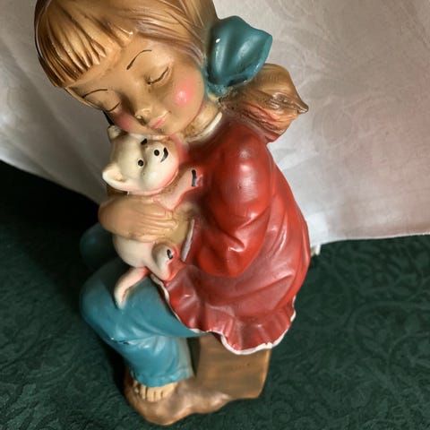 Dette er en veldig vakkert utformet skulptur av en katt med buet rygg. En spinnende katt. Veldig dekorativ og av hy kvalitet. Laget av bronse med en veldig vakker grnnfarget patina. Dimensjonene p dette vakre stykket er som flger: