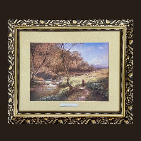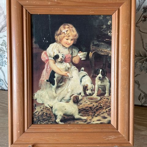 B. Antikk tung ramme med vakker dekor og glass. Det er noen sm deler som er delagt. Dette er oppdatert med Amsterdam oljemaling. Se bilder. 27,5 x 22 og 45 x 39 cm.