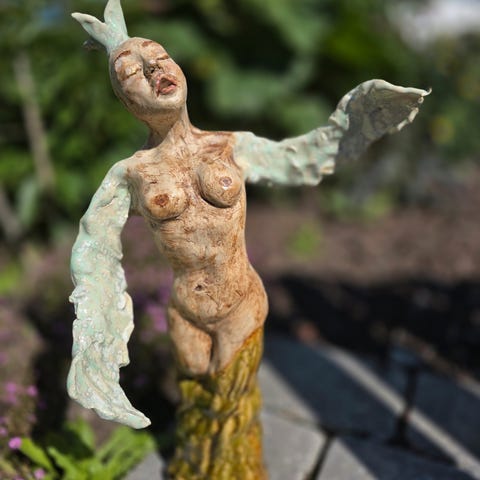 Veldig flott stykke. To personer hvorav den ene faller, og den andre redder ham fra avgrunnen. Veldig flott til innendrs bruk eller utendrs.