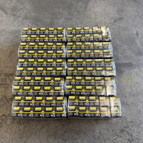Parti med 50.stk nye xenonpærer fra Lyzzpro. Type D3S, 42V og 35W med sokkel PK32d-5 – beregnet for biler med xenon hovedlys og kompatibel ballast. Standard fargetemperatur rundt 4300K.🔹 50 stk Lyzzpro D3S Xenonpærer, 42V 35W, PK32d-5