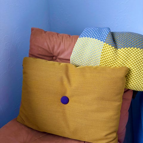 Den avlange formen gir god støtte i korsryggen eller nakken, og putens distinkte knapp gir den et grafisk og lekent preg. Brukt HAY er det nye – et stilsikkert og bærekraftig innslag i interiøret.