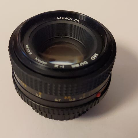 Fem Minolta MD-objektiver.