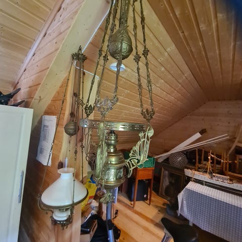 Jeg fant dem i familiepalasset sammen med alle andre oljelamper av ulike slag, og denne var blitt elektrifisert av mine forfedre. Faktisk klippet jeg ledningen og lot bare den indre festet vre igjen, hvor lyspren skrus inn.