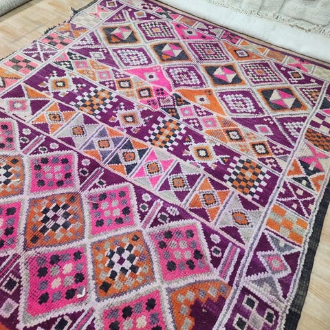 Hndlaget av amazigh-kvinner, som vever sine livshistorier og beskyttende symbolikk i ren ull. Den rike, varme jordfargen minner om det gldende landskapet i Atlasfjellene ved solnedgang og gir hvert rom umiddelbart en flelse av trygg elegant.