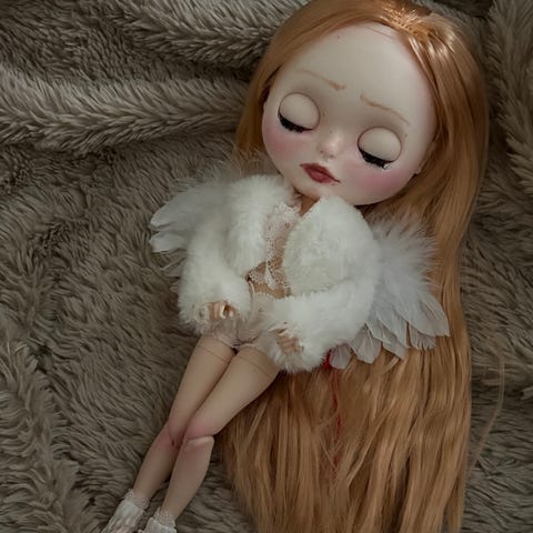 Bambola Blythe kunstnerisk inspirert av den tidlse karakteren Alice i Eventyrland, tolket i en mer intens og drmmende versjon, med mrkt hr som tilfrer dybde og mystikk til karakteren.