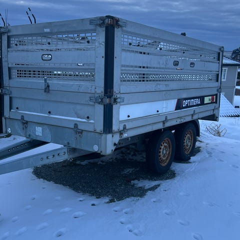 Defekt nesehjul, bremser, lagrer, tippfunksjon og lys uviss tilstand og ikke testet, men hengeren ruller.