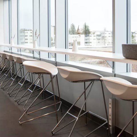 9 stk Popcorn barstol fra ForaForm, hvit, 82 cm sittehøyde