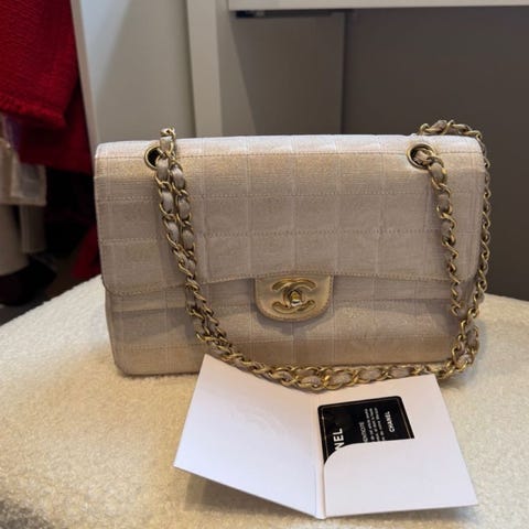 Endelig får vi påfyll av denne etterspurte modellen! Denne klassiske Chanel Double Flap Bag er laget av lammeskinn, med gullfarget hardware. Vesken i veldig fin stand med lite bruksmerker! Nypris for denne modellen ligger rundt 125000,- idag.